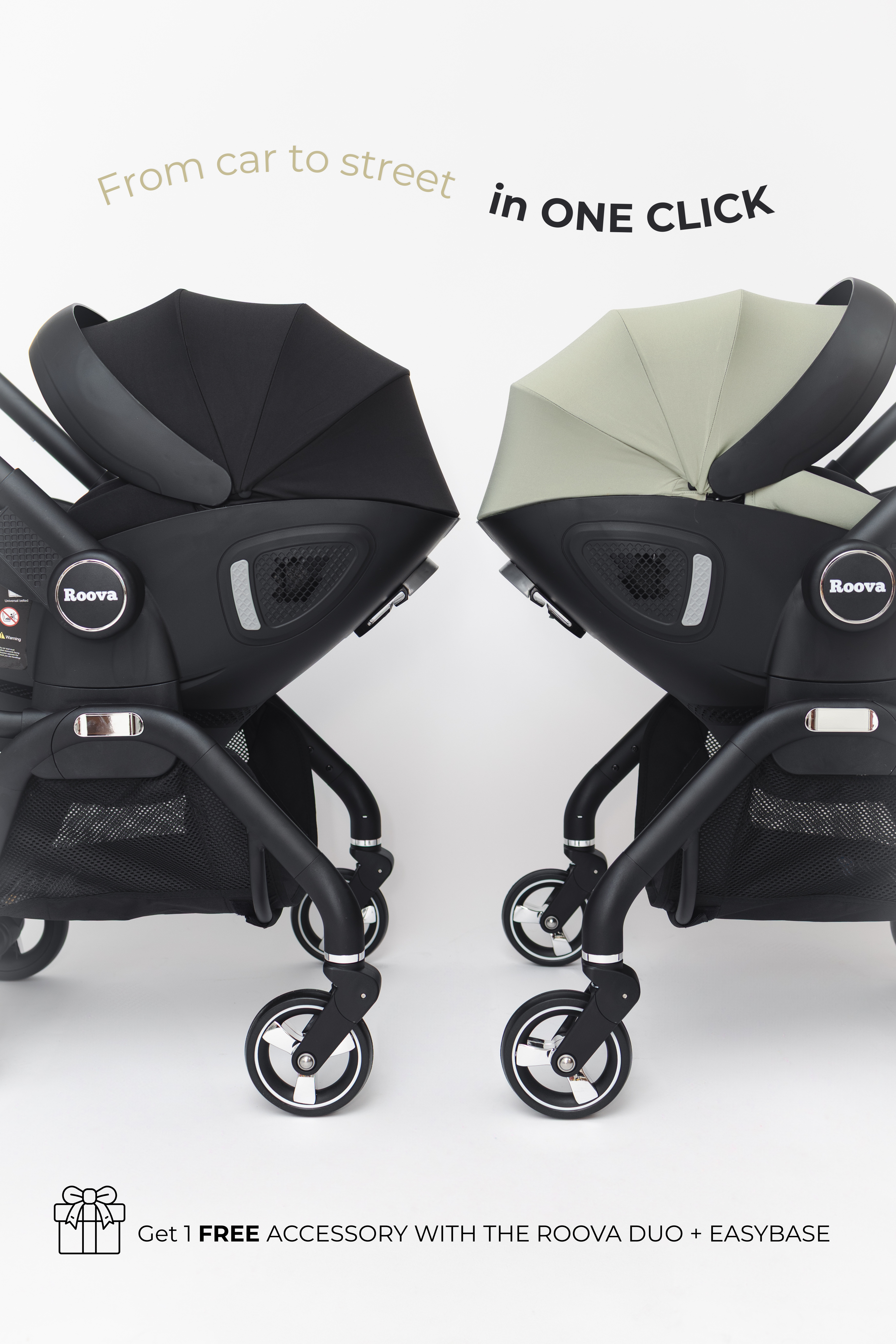 The Roova Duo is suitable for children up to around 15 kg (approximately 1 to 1.5 years old). After this stage, you can extand it with the buggy unit. This way, the Roova Duo grows with your child and remains a flexible solution over time.