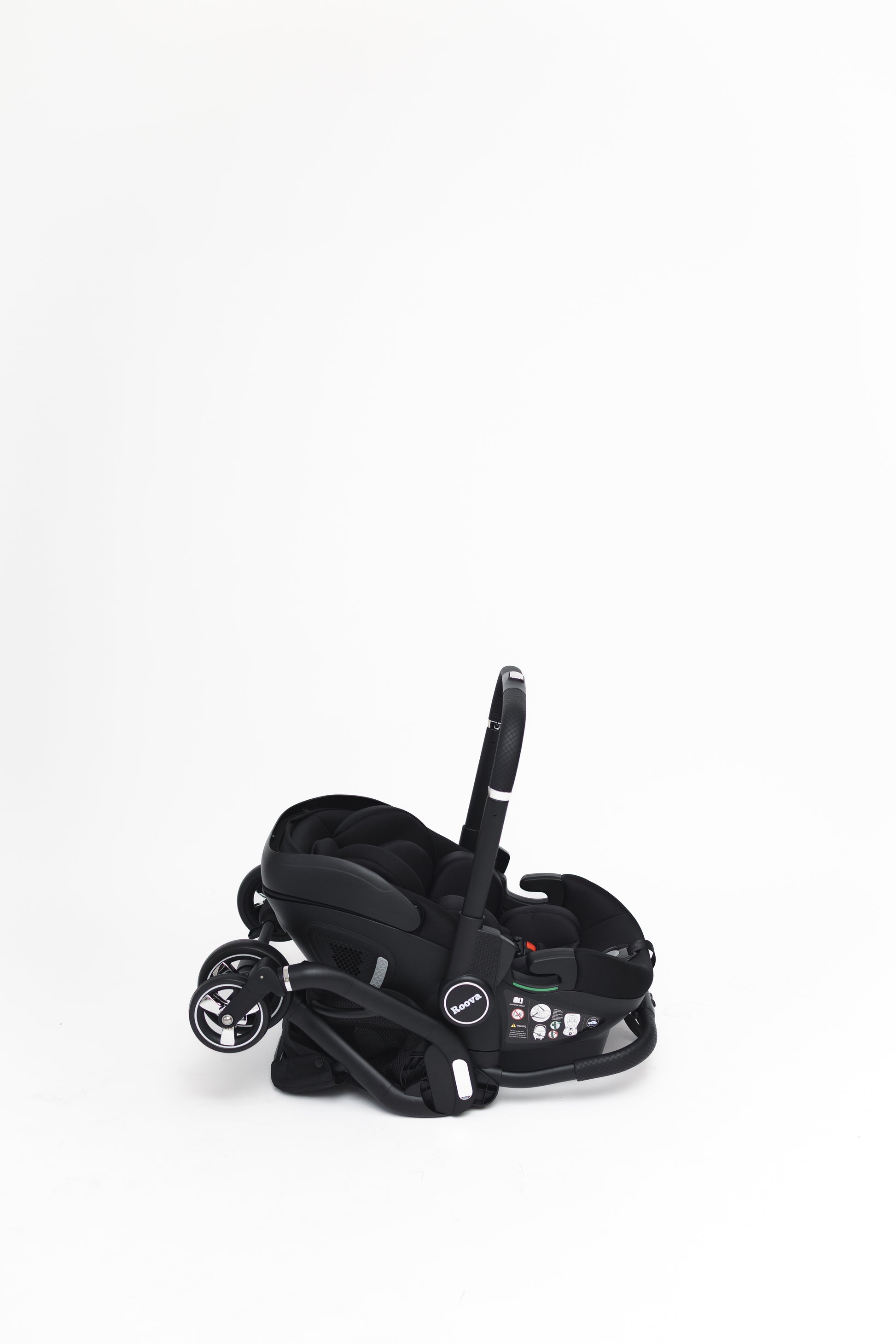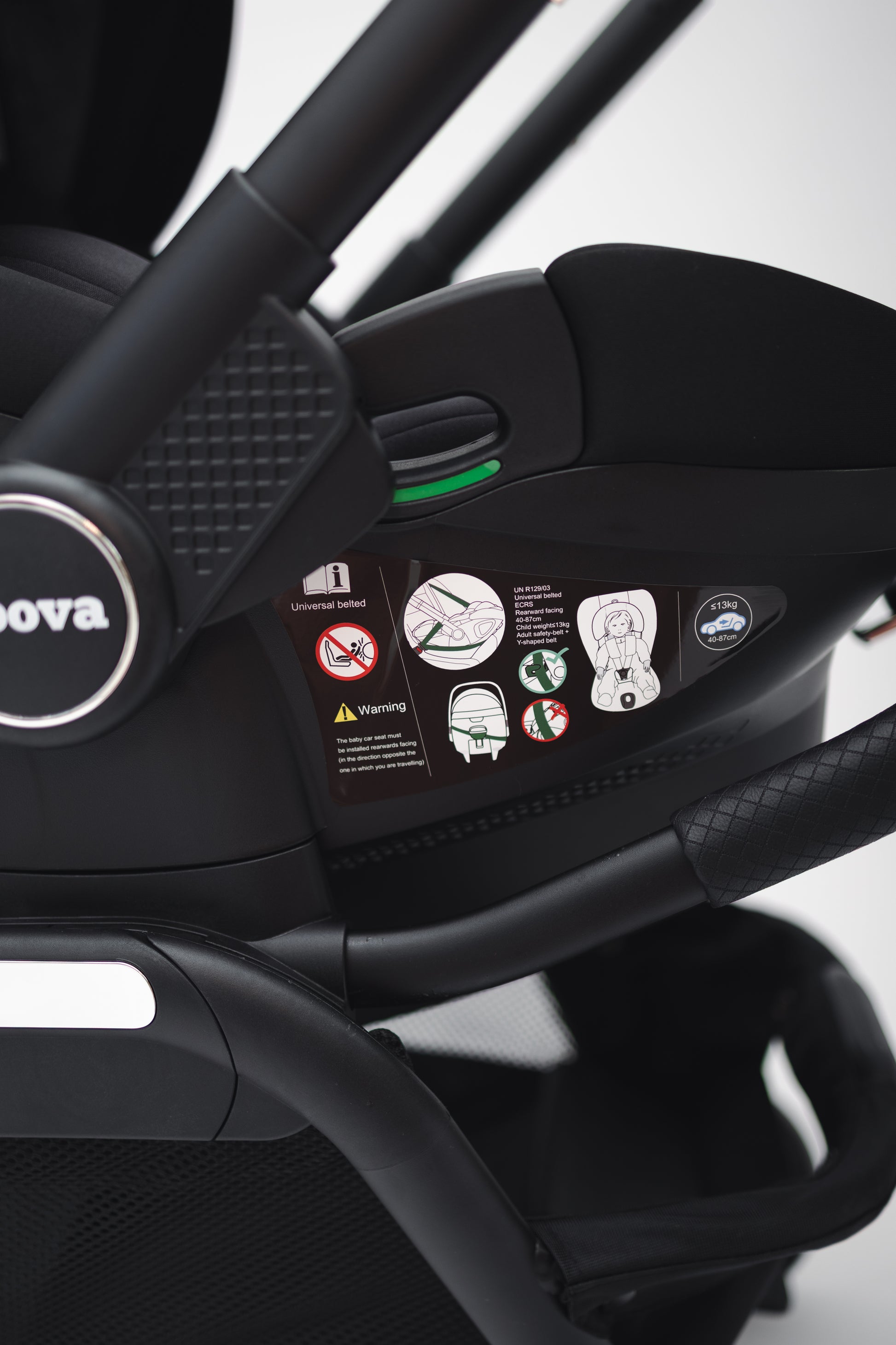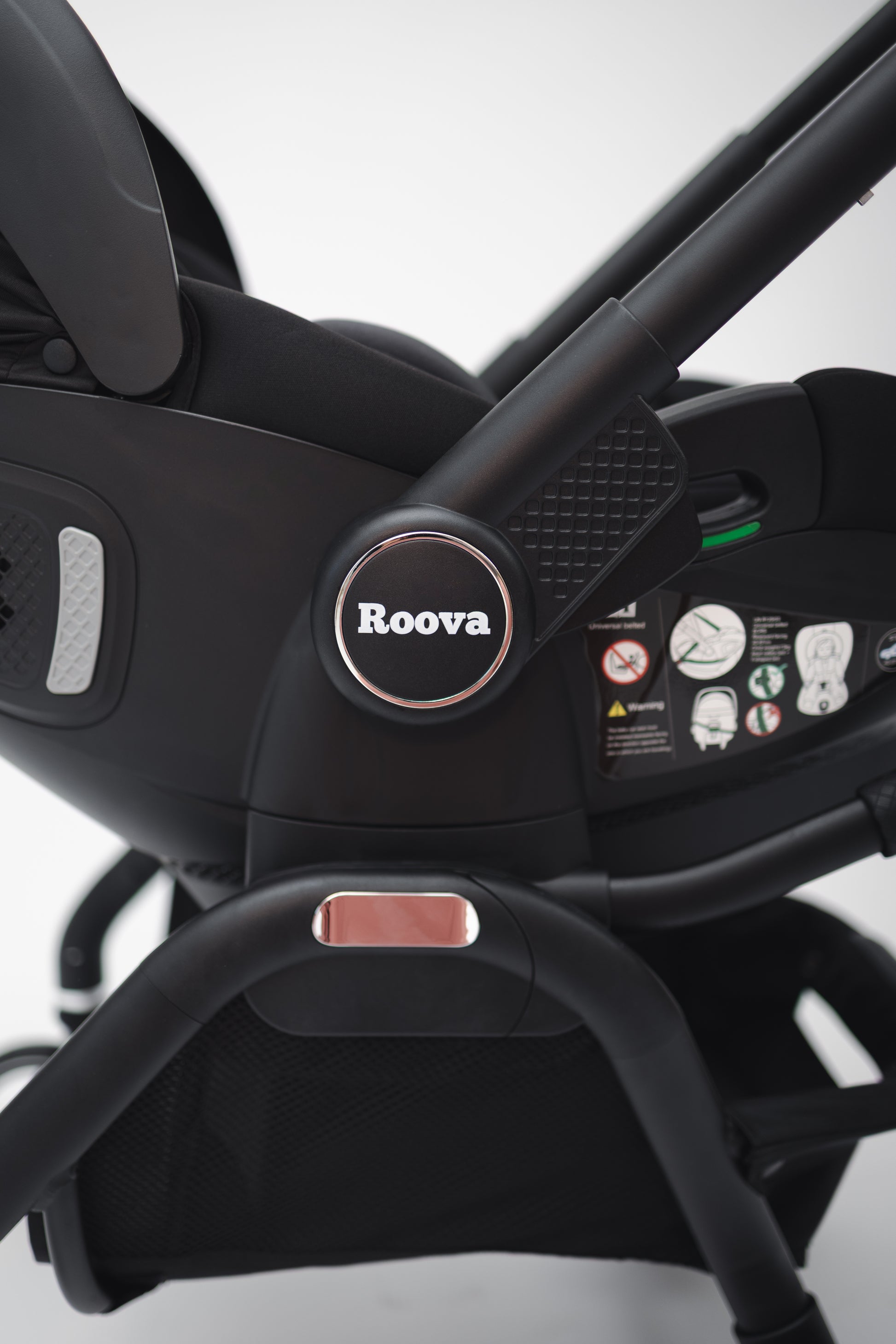 Die tiefschwarze Farbe verleiht dem Roova Duo einen modernen, zeitlosen Look, der zu jedem Lebensstil passt. Sicherheit steht an erster Stelle: Der Sitz ist i-Size-zertifiziert und von der Geburt bis 15 kg geeignet.